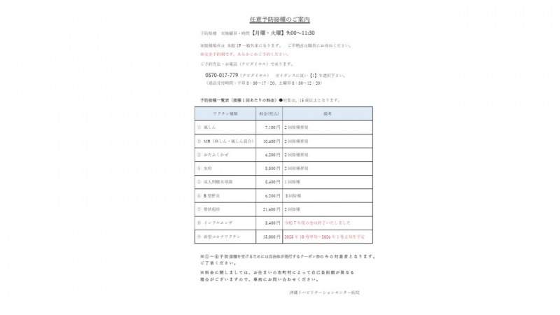 ※①~④予防接種は、自治体が発行するクーポン券お持ちの方のみ対象となります。ご了承ください。