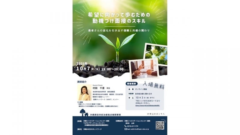 令和7年10月7日(火)に沖縄県依存症治療拠点機関事業 依存症医療研修を開催いたします。