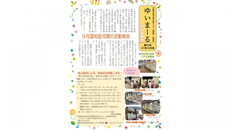2025.10.17 お知らせ 広報誌 「🌟 地域包括支援センター西部南広報紙 2025年10月号」 を公開しました 🌟 地域包括支援センター西部南広報紙 ゆいまーる 山久諸桃里 2025年10月号 ↑ 🌈こちらをクリック ↑ 沖縄市で活動している地域包括支援センター西部南が発行している広報紙です。是非ご覧ください。(2025.10月号) 沖縄市地域包括支援センター西部南についてはこちら ぷち健診(骨・脳・血管) 実施しています! 広報誌 「🌿 宜野湾市地域活動支援センターTAPIC 2025年10月号」 を公開しました 記事一覧に戻る