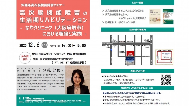 2025年12月6日(土)に沖縄県高次脳機能障害セミナーを開催いたします。