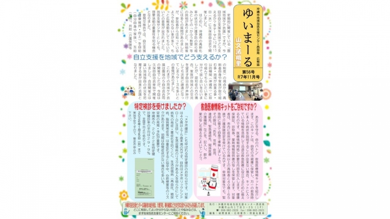2025.11.10 お知らせ 広報誌 「🌟 地域包括支援センター西部南広報紙 2025年11月号」 を公開しました 🌟 地域包括支援センター西部南広報紙 ゆいまーる 山久諸桃里 2025年11月号 ↑ 🌈こちらをクリック ↑ 沖縄市で活動している地域包括支援センター西部南が発行している広報紙です。是非ご覧ください。(2025.11月号) 沖縄市地域包括支援センター西部南についてはこちら 依存症研修「いつでも誰でもどこでもできるアルコール診療」12/16開催のお知らせ 記事一覧に戻る